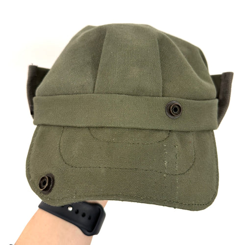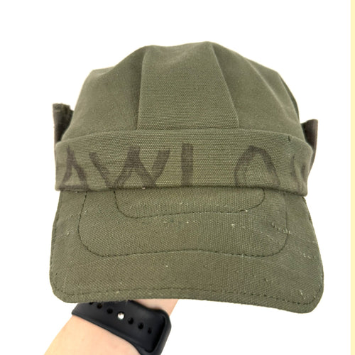 Each Utility cap features a detachable strap on top that allows for unique styling, and for the hat to be fashioned into a bag. They are all cut and sewn by me, made from upcycled military canvas and hardware.